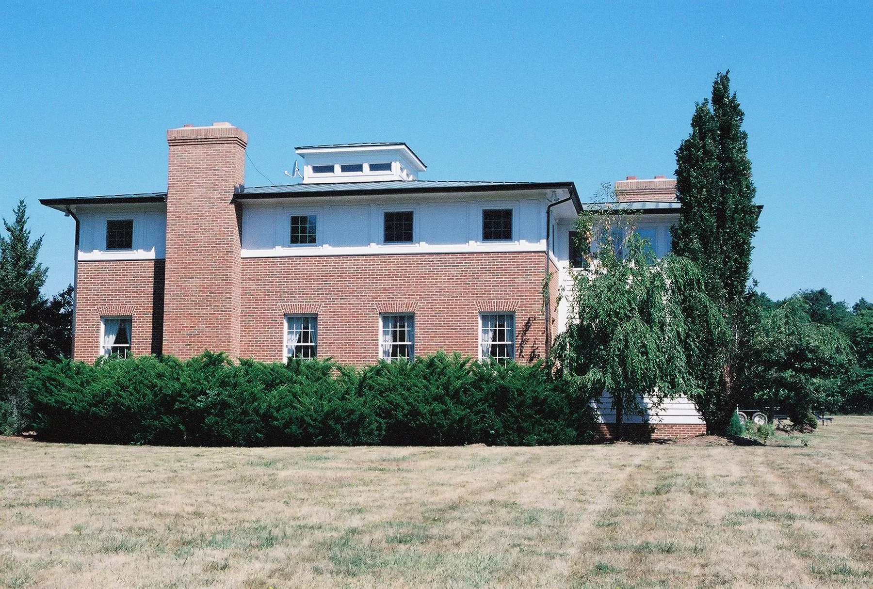 The Roof and Second Story of the home was demolished and replaced with cedar shakes and a conventional Colonial Roof line.